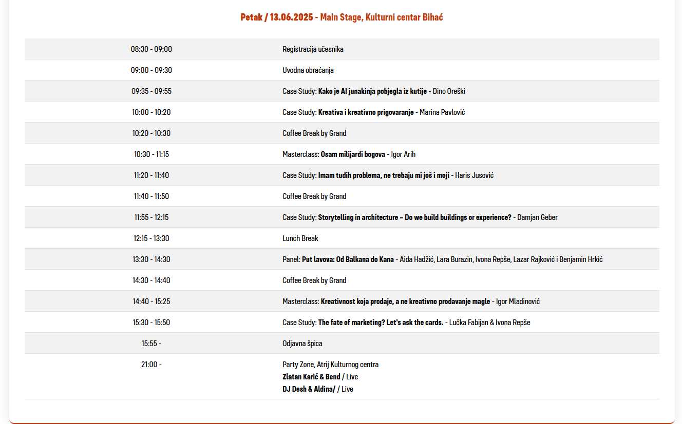 Vjerujemo da učešće na ovom događaju predstavlja izuzetnu priliku za profesionalno usavršavanje, razmjenu znanja, upoznavanje sa savremenim trendovima i povezivanje sa stručnjacima iz cijelog regiona. Upravo zato, Komora je za svoje članice obezbijedila određeni broj besplatnih kotizacija za učešće na ovom inspirativnom jednodnevnom festivalu.