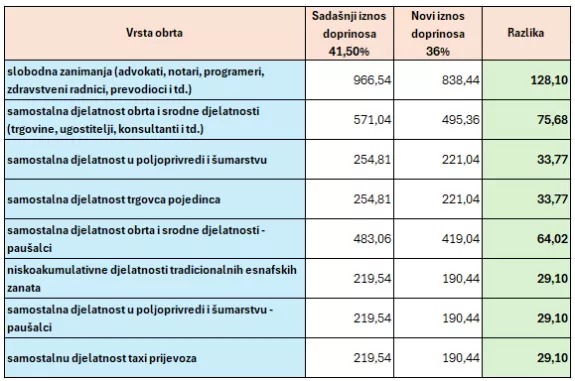 Novim zakonom, tačnije izmjenom zakona o doprinosima za obrtnike su uvedene sljedeće stope: