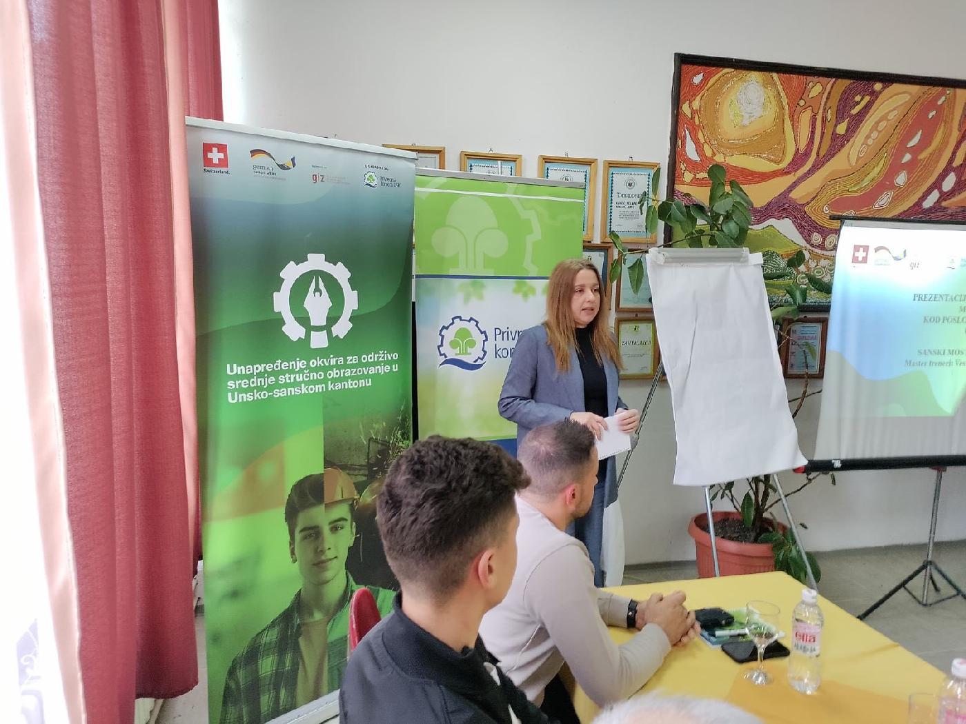"Nastojimo svaku obuku približiti mentorima s područja USK, te smo iz tog razloga danas ovdje u općini Sanski Most koja je primjer dobre prakse kada govorimo o subvencioniranju stručne prakse u preduzećima. U nastavku projekta, najviše ćemo raditi na promociji zanimanja u saradnji s osnovnim i srednjim školama, te privrednim subjektima s područja USK-a. Svakako, planiramo sprovođenje još obuka u drugim općinama i gradovima kako bismo unaprijedili srednje stručno obrazovanje na našem kantonu." - naglasila je Sanela Sabljaković, predsjednica Privredne komore USK.