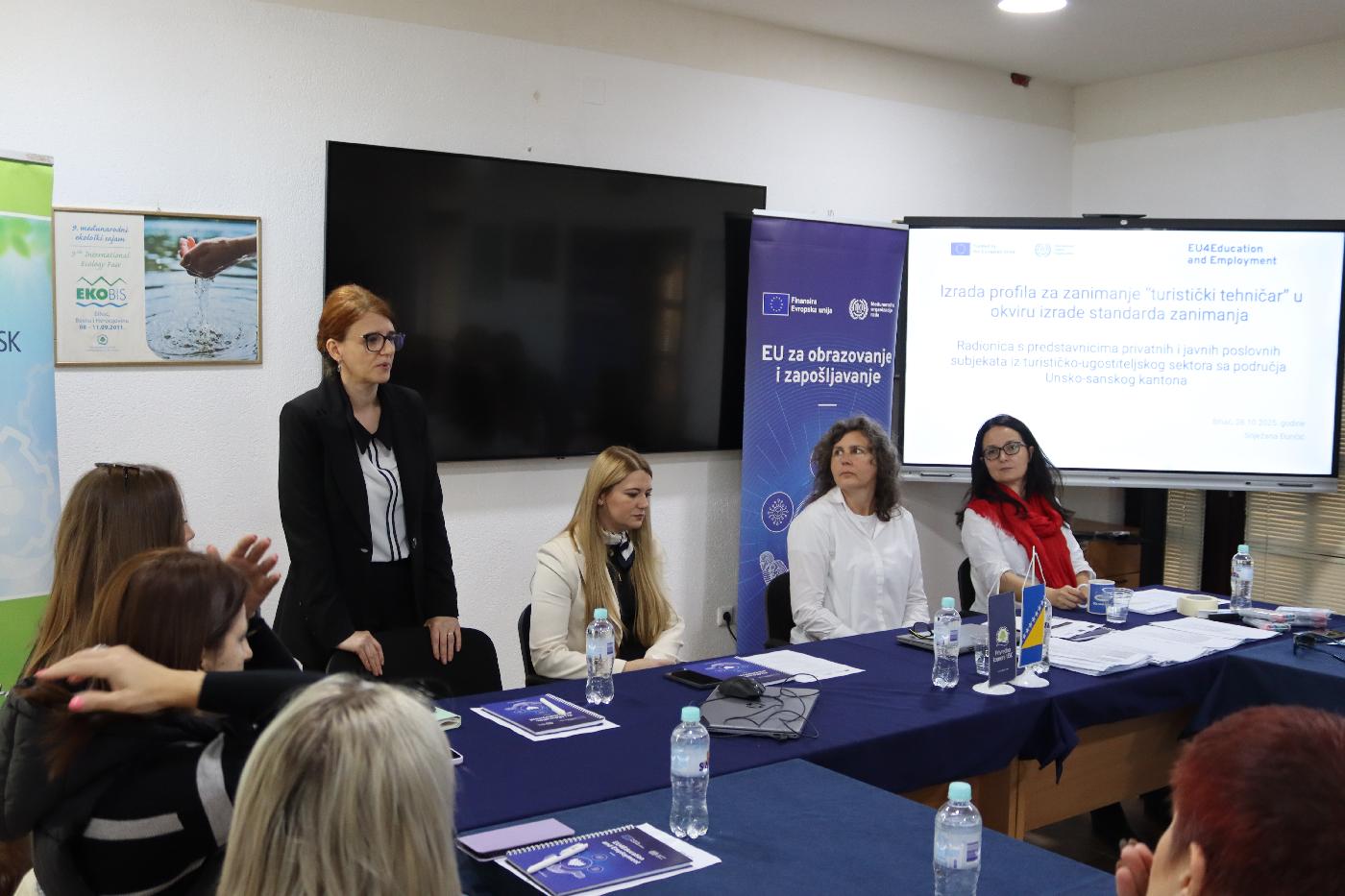Radionica je održana u okviru projekta „EU podrška unapređenju kvaliteta stručnog obrazovanja – EU za obrazovanje i zapošljavanje“, kojeg finansira Evropska unija, a provodi Međunarodna organizacija rada (ILO). Okupila je predstavnike privatnog i javnog sektora iz Unsko-sanskog kantona, uključujući ministarstva, turističke zajednice, hotele, agencije i druge poslodavce iz oblasti turizma i ugostiteljstva. Zajedno su analizirali koje su vještine i znanja najpotrebniji za uspješno obavljanje poslova u turizmu, s ciljem da se ovi nalazi ugrade u nove standarde zanimanja koji će biti primjenjivi i relevantni za tržište rada.